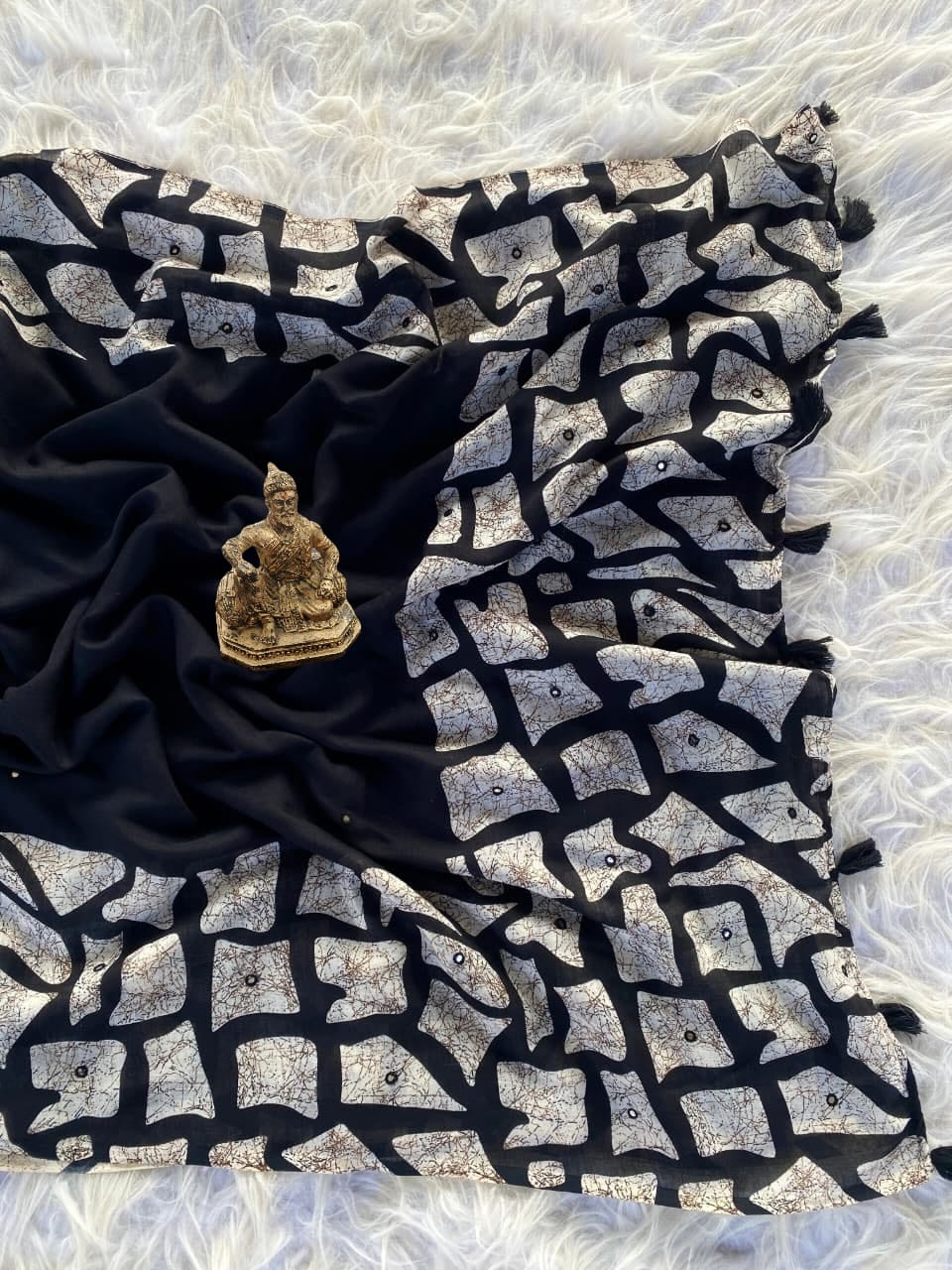 Heavy Faux georgette saree with mosaic digital print on allover saree with mirror work All over saree and perfectly matched blouse piece and pallu with tussels