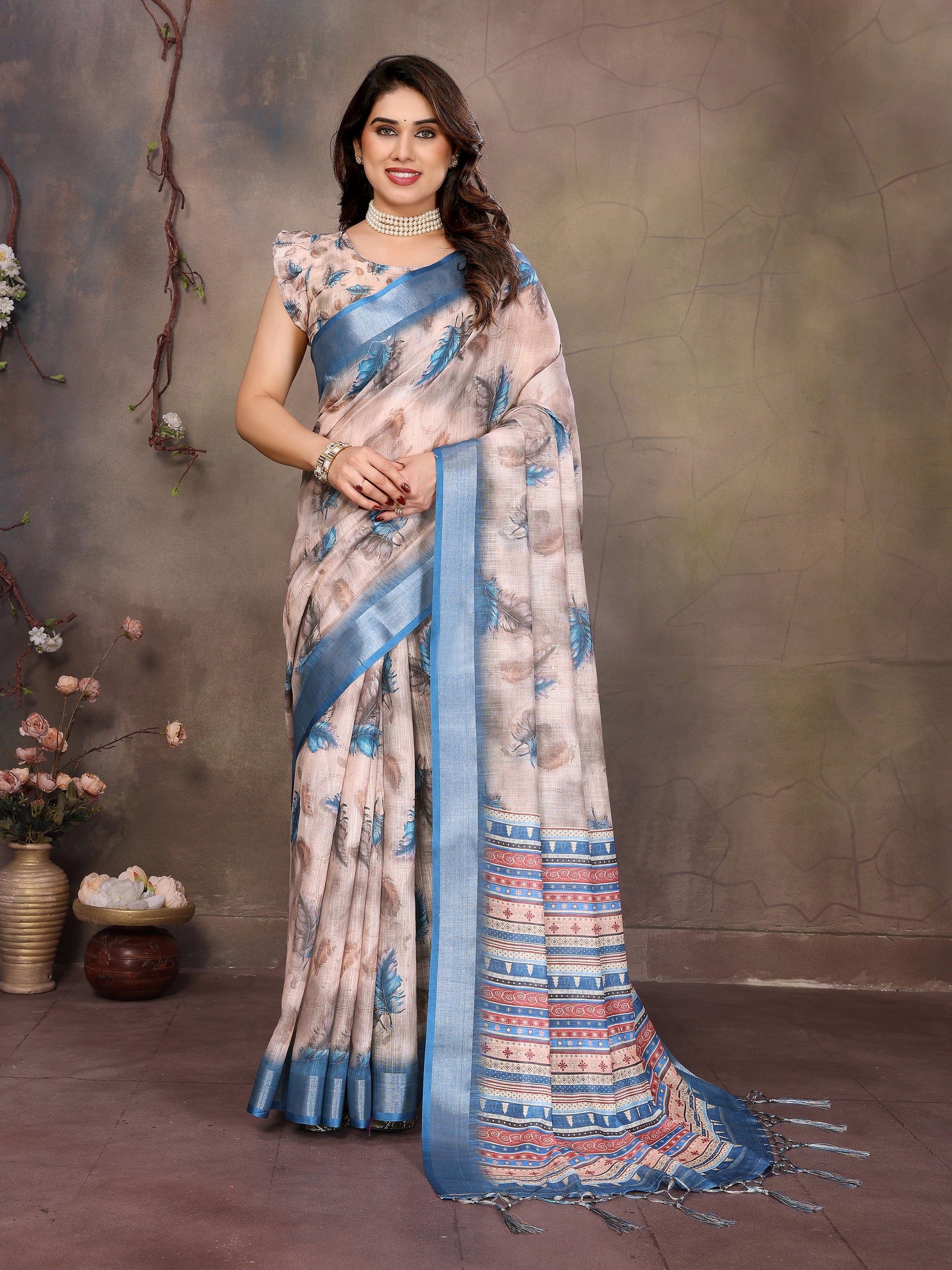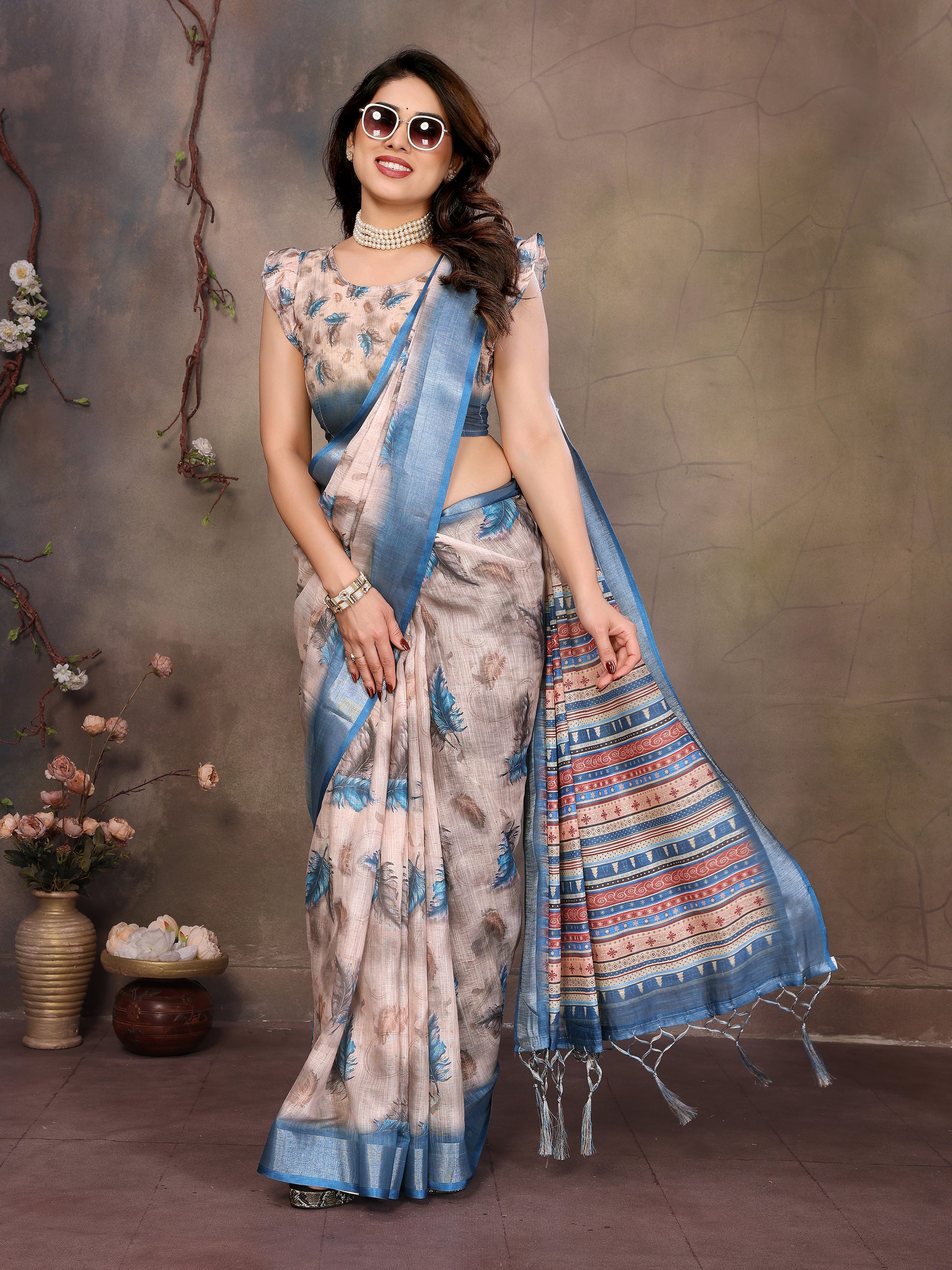 Beautiful Linen Cotton Saree Adorned with Tassels