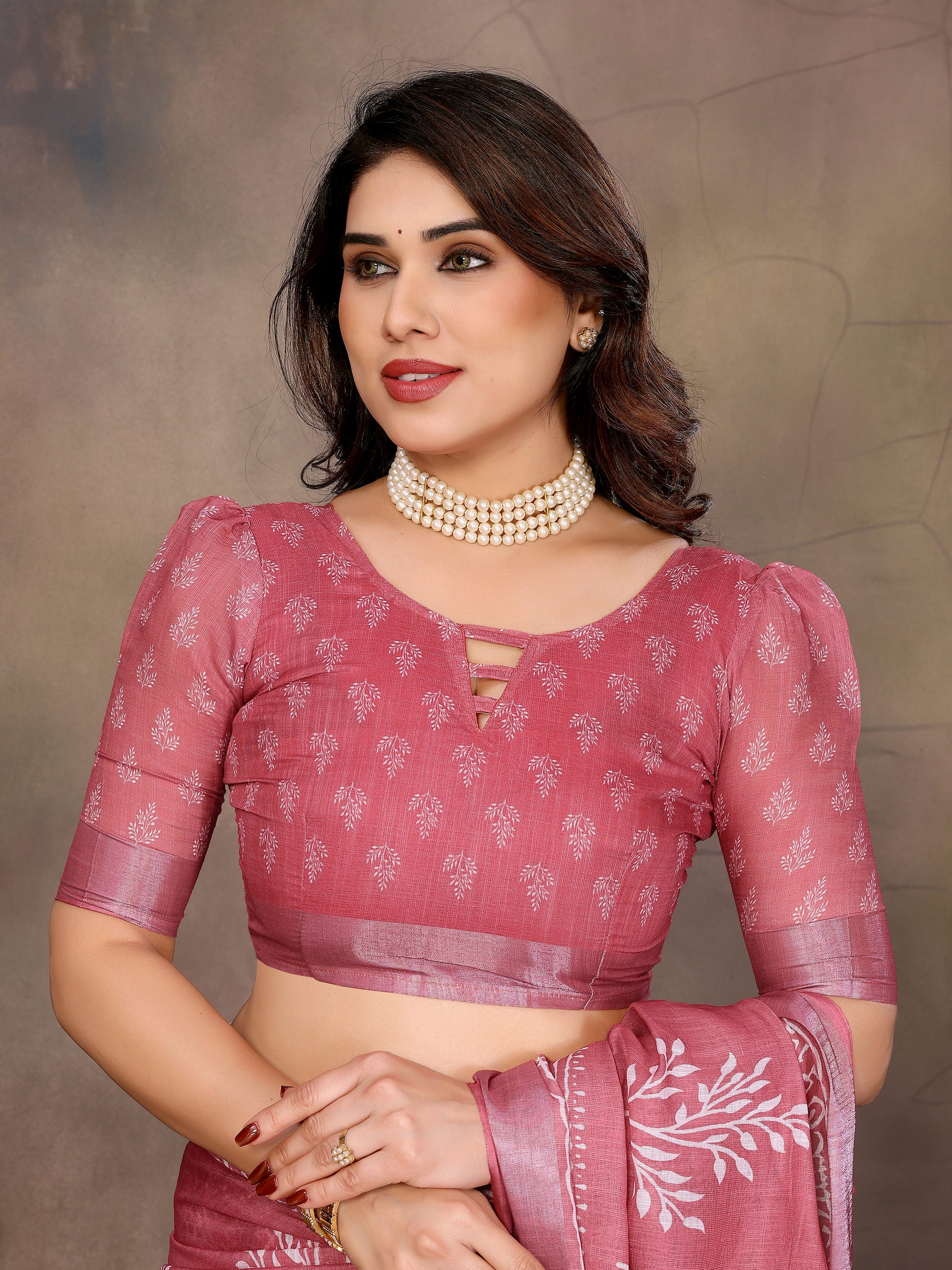 Beautiful Linen Cotton Saree Adorned with Tassels