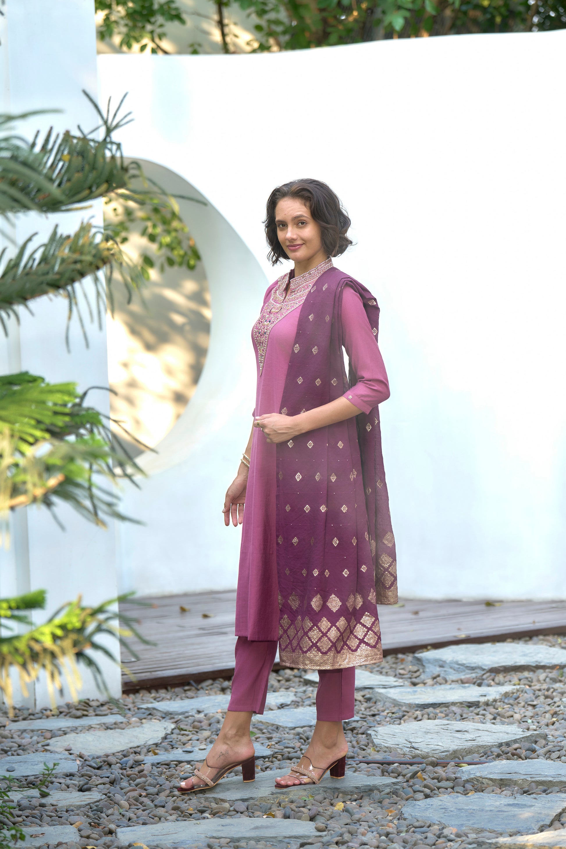 Mauve Pink Embroidered Kurta Set