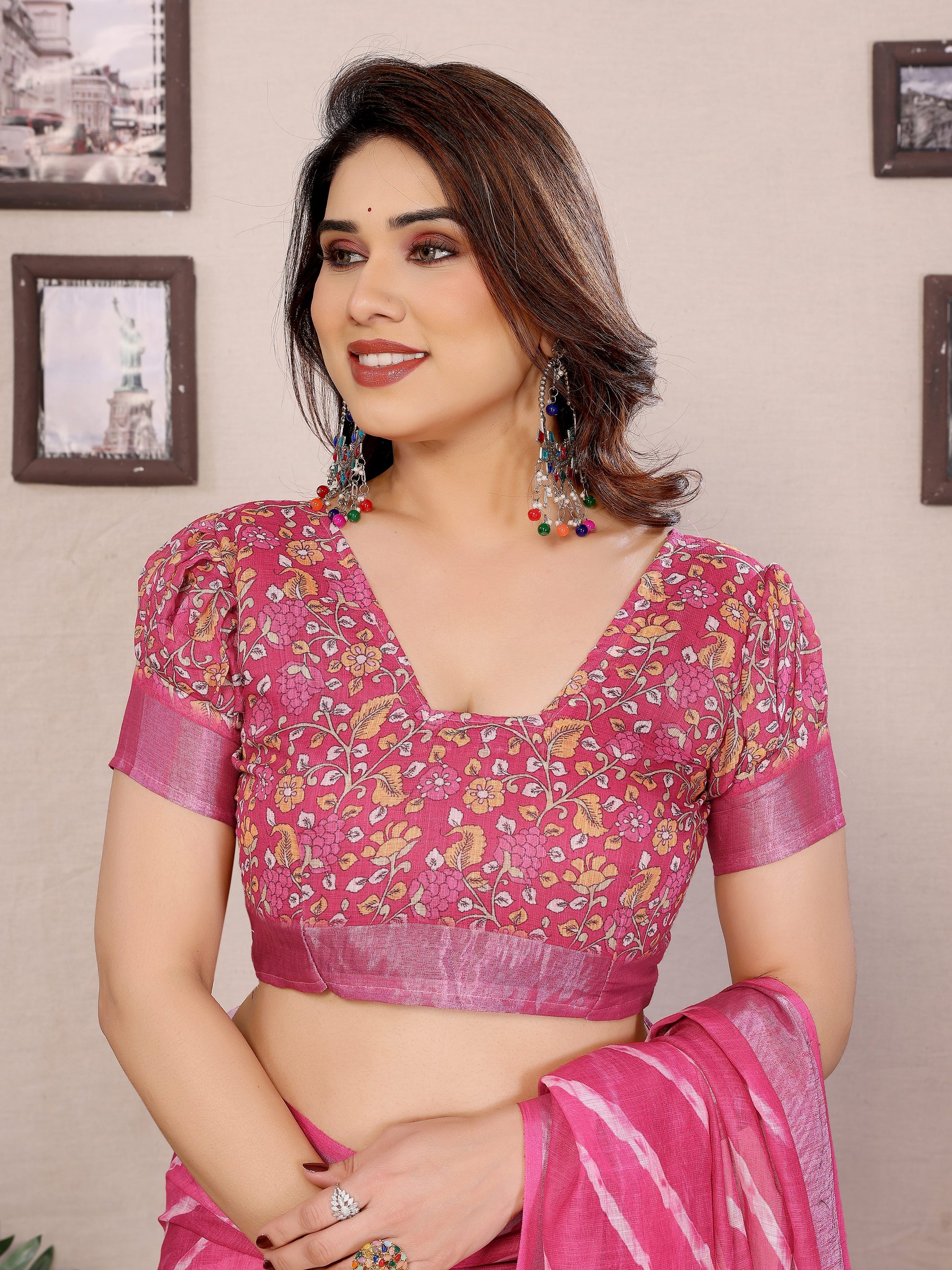 Beautiful Linen Cotton Saree Adorned with Tassels