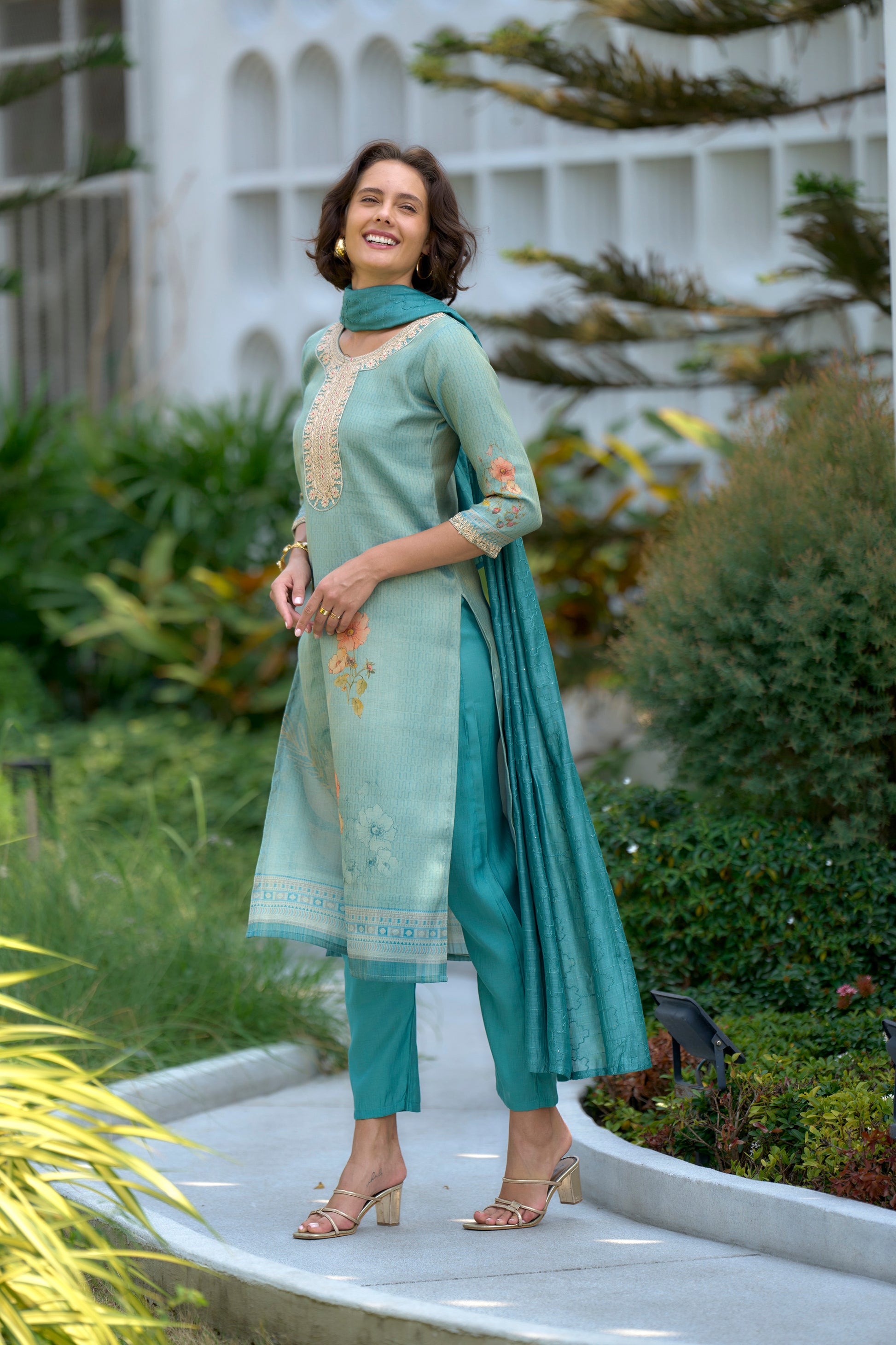Seafoam Elegance Embroidered Kurta Set