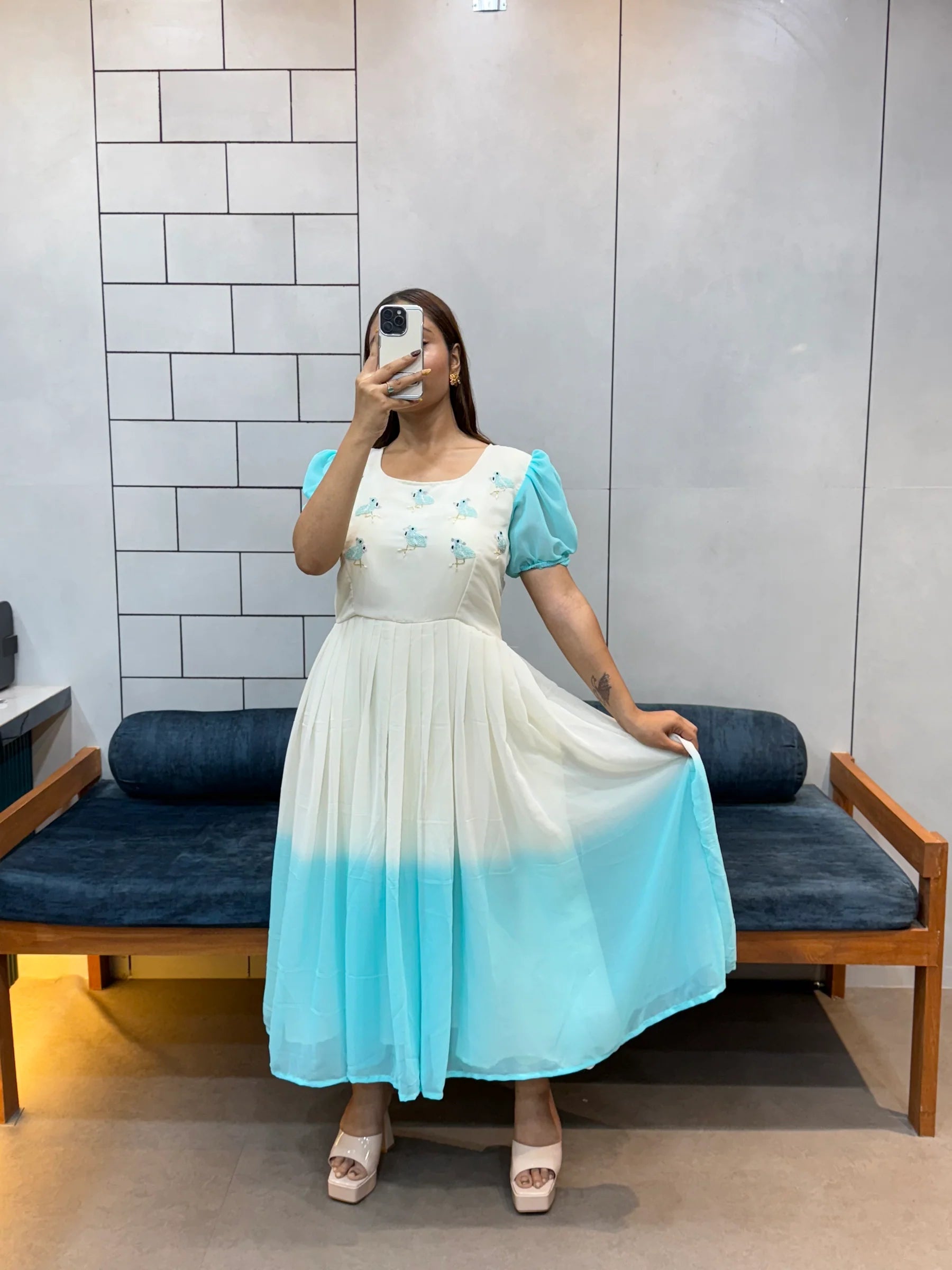 Elegant Handcrafted Pedding Fox Georgette Maxi Dress