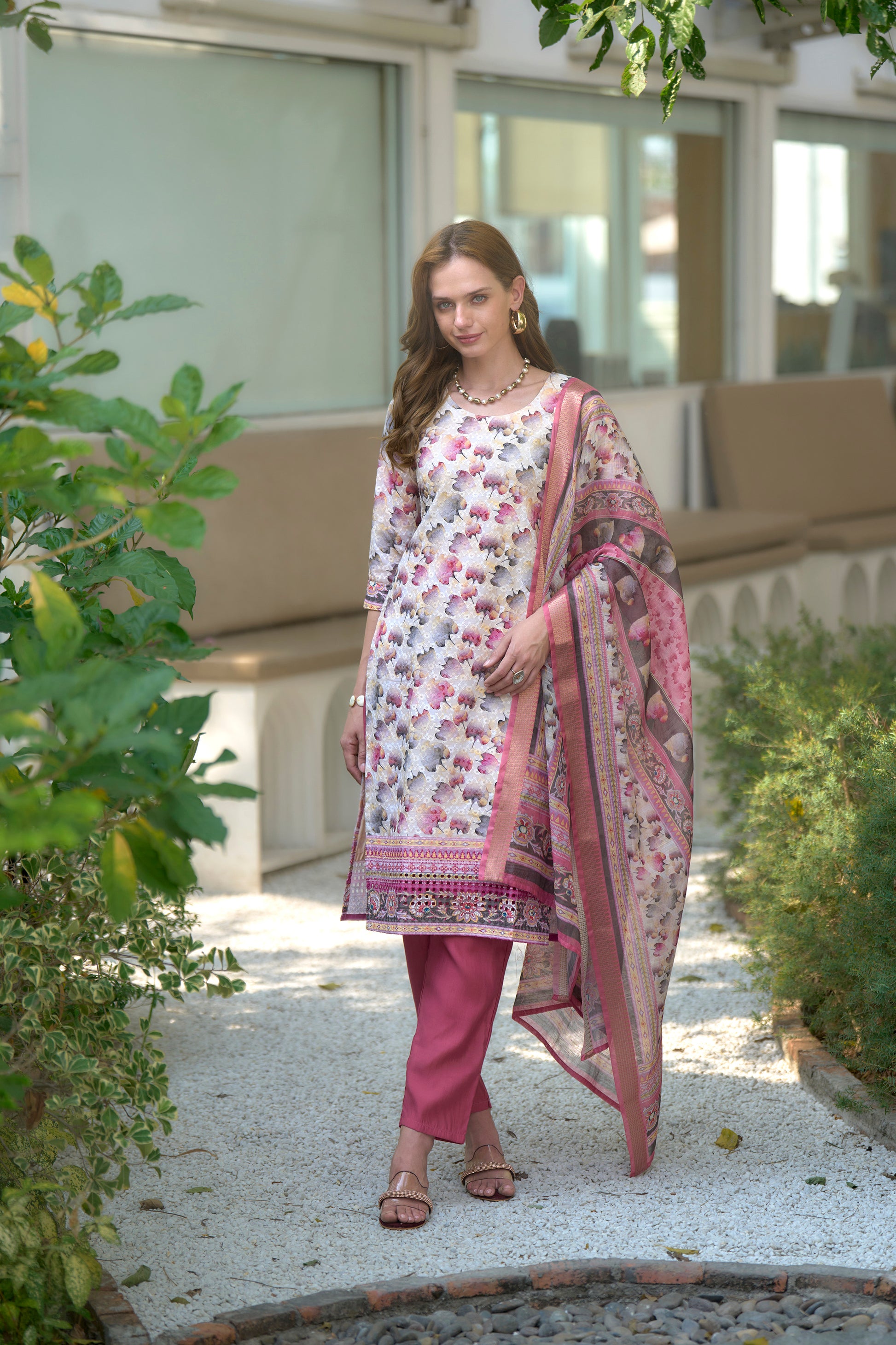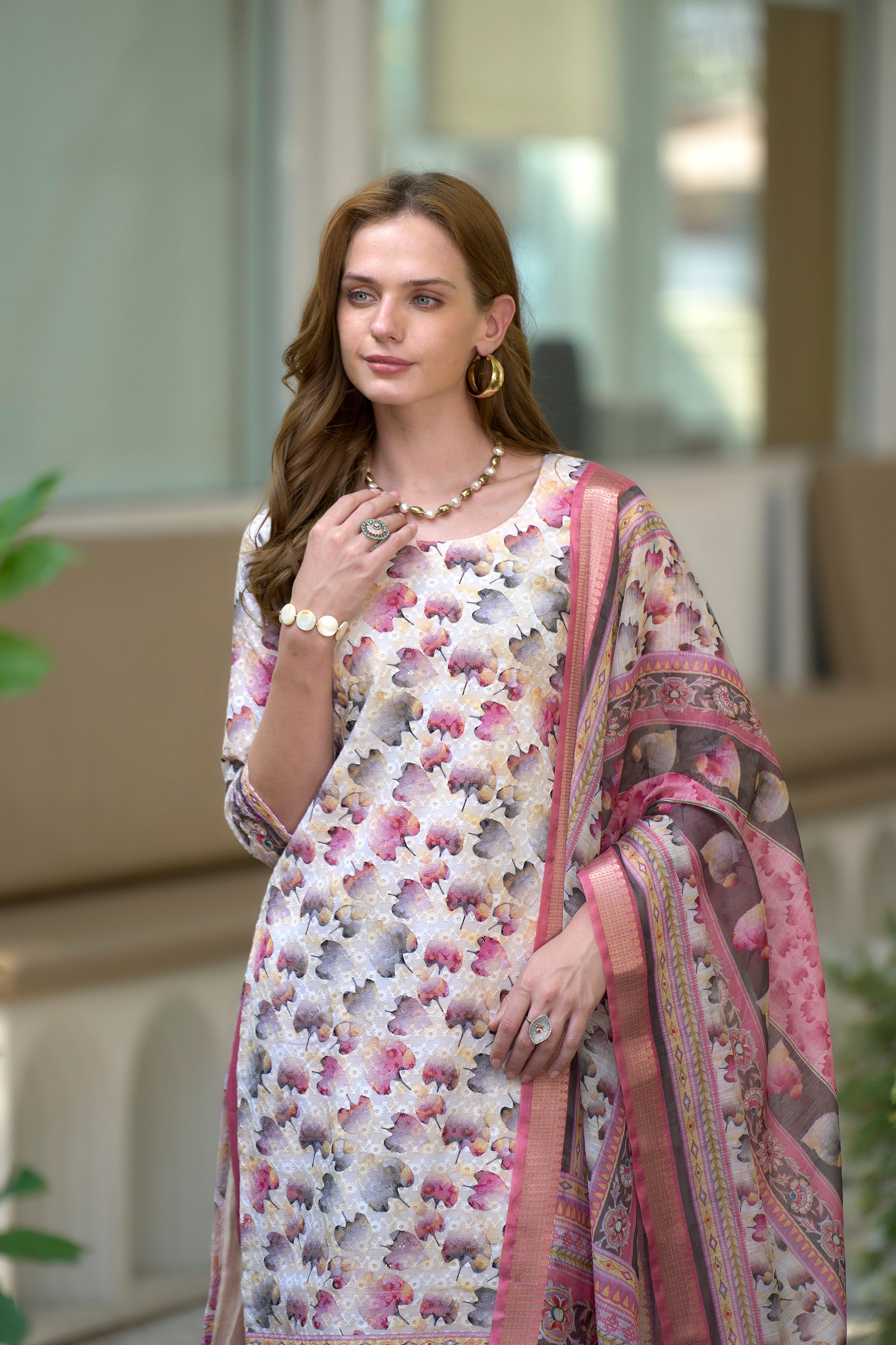 Blush Pink Pure Organza Saree with Hand-Painted White Floral Motifs and Sequin Detailing