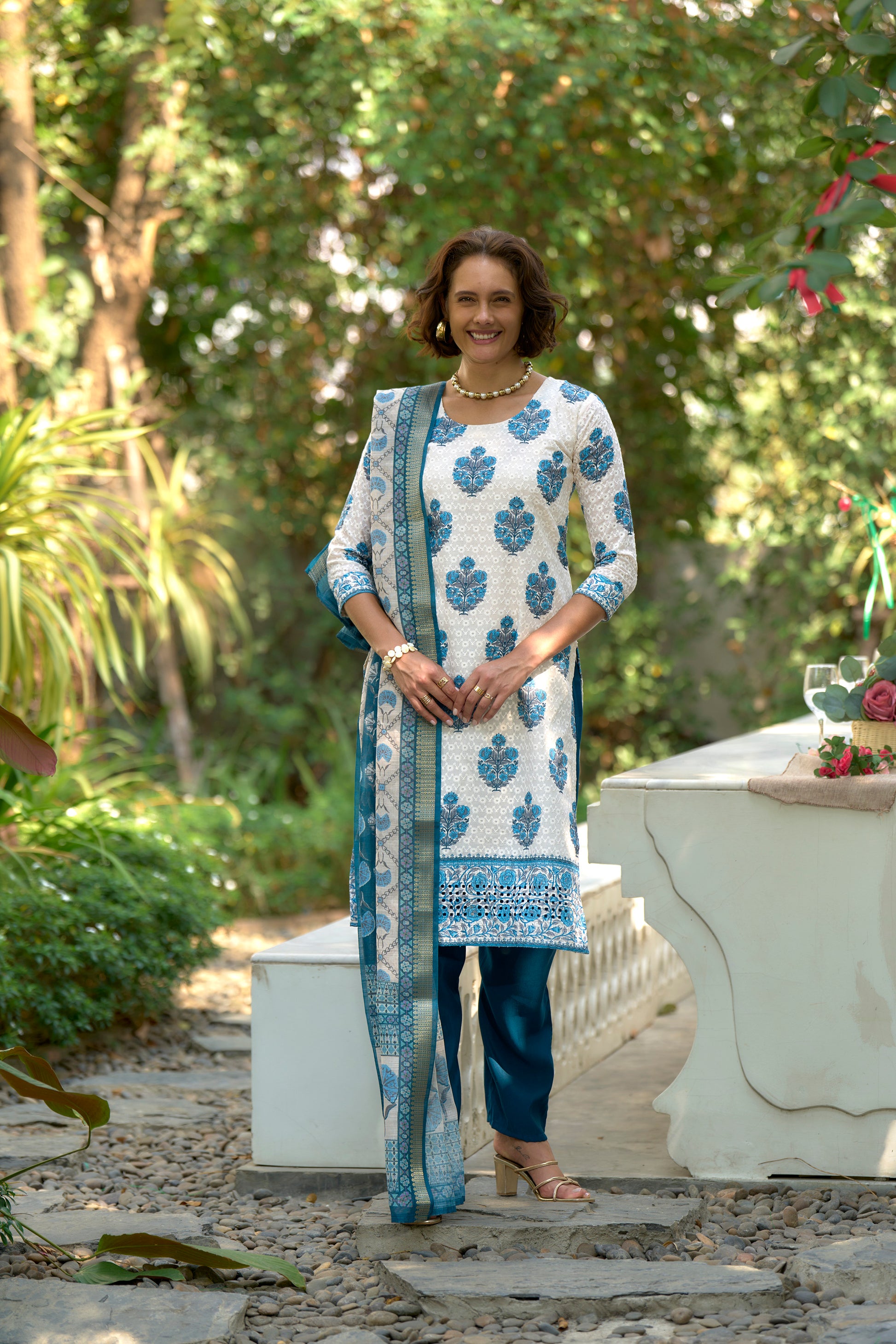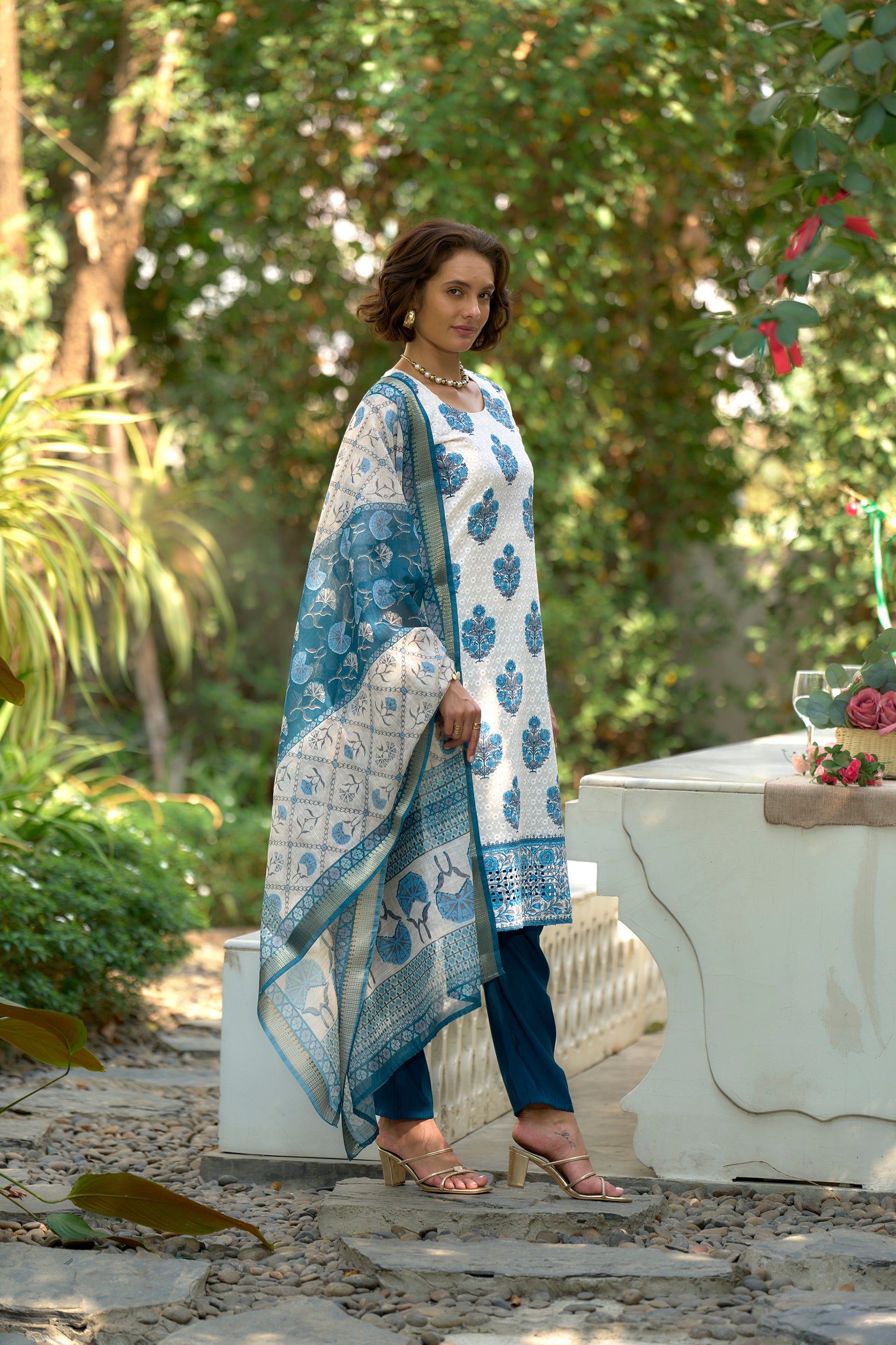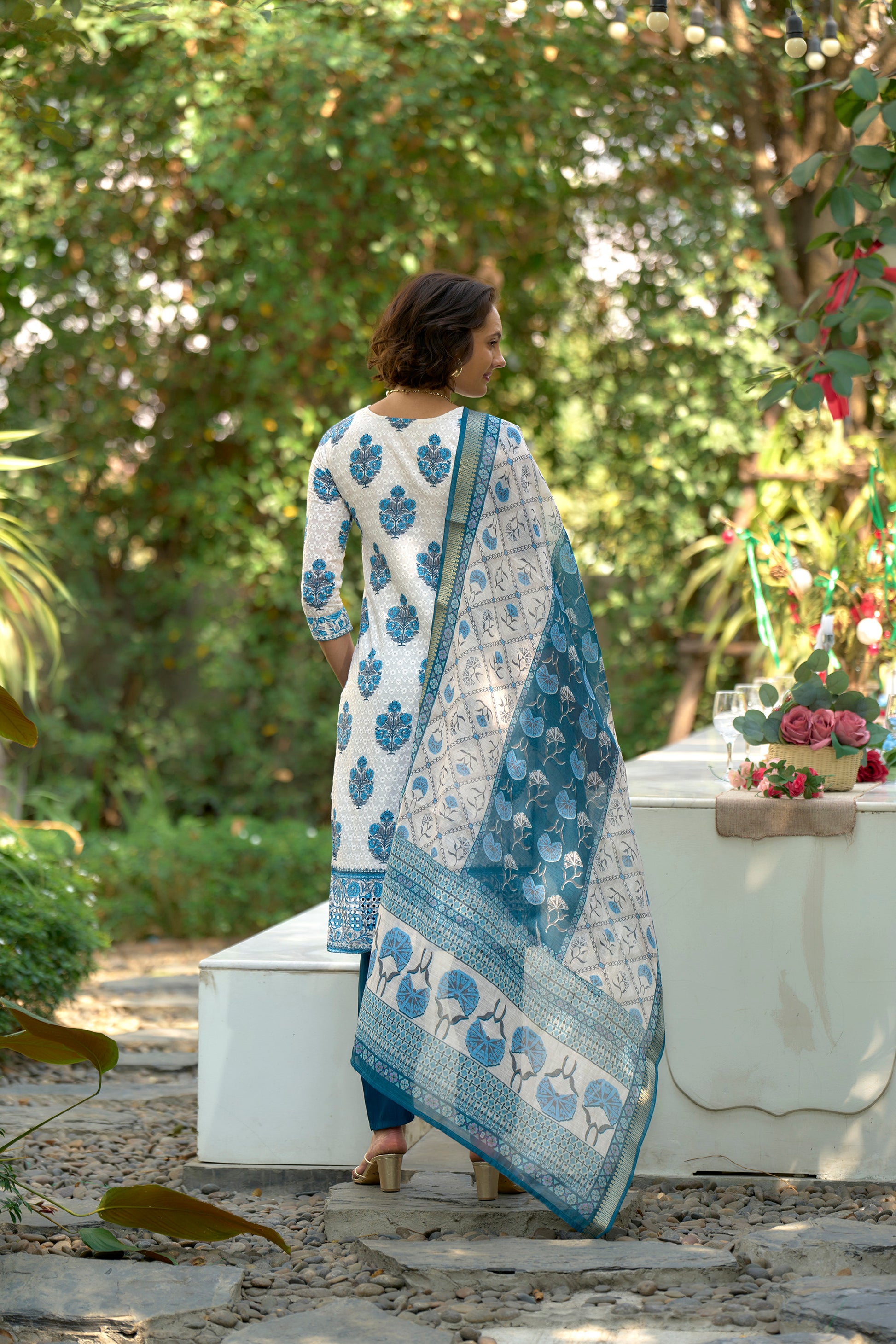 White Printed Cotton Kurta Set
